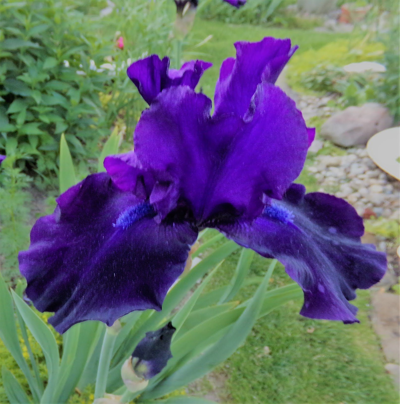 This is the second year for this iris, the first year to bloom. I bought it at the Ann Arbor farmers market. I wish I could tell you its name. It is so blue it is almost black.